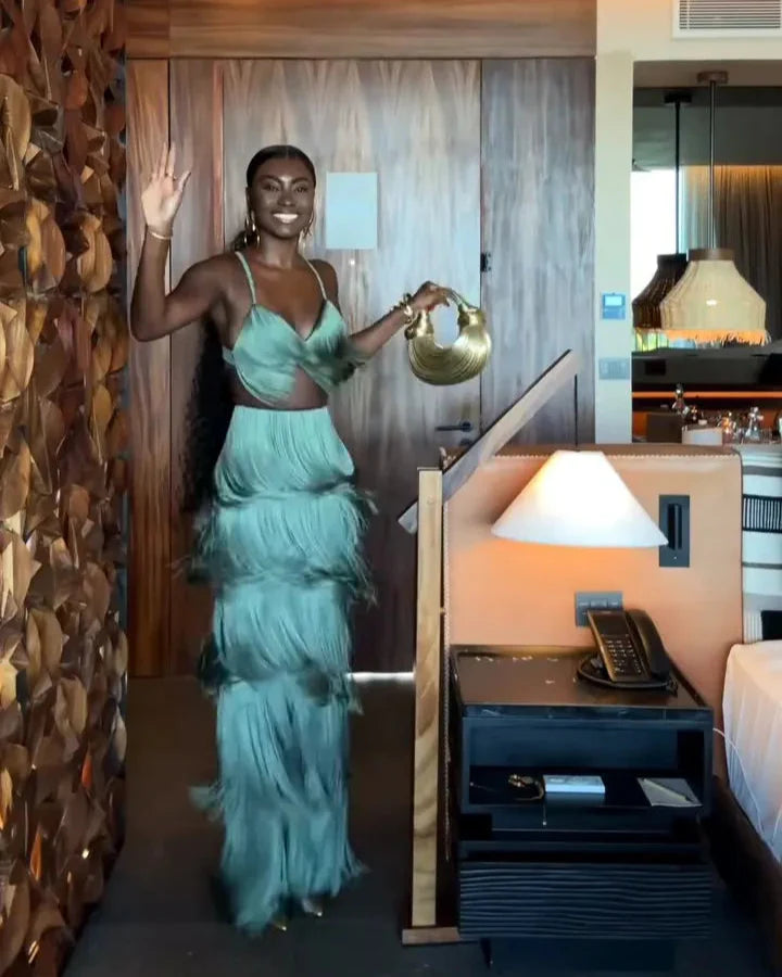 - The fringe fabric has little to no stretch, so measure your bust & waist carefully before choosing.
